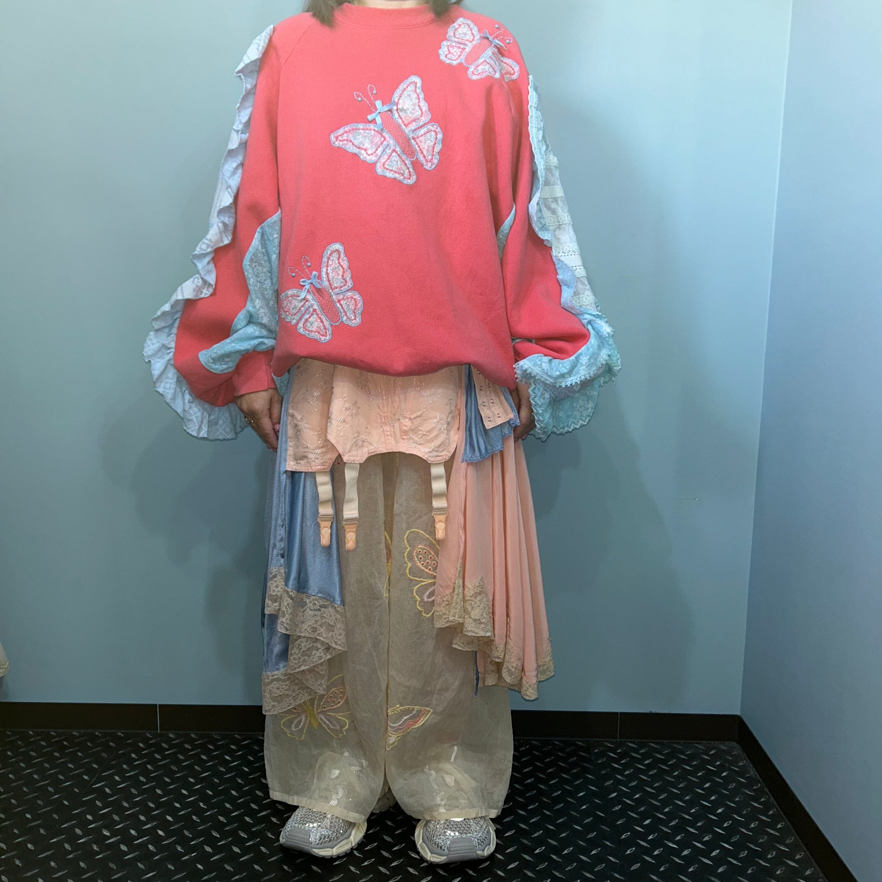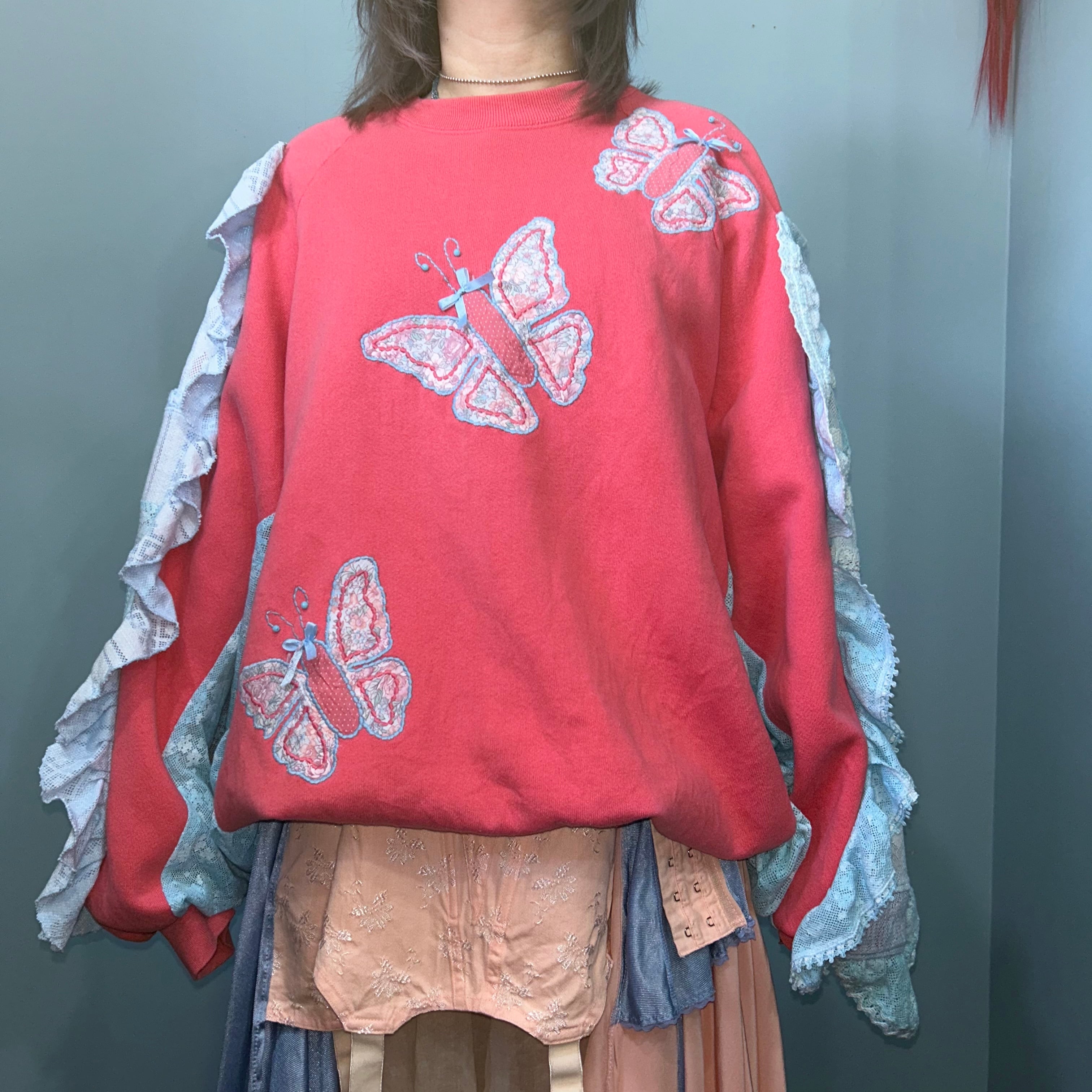 袖に一輪挿しポケットがついたチョウチョのスウェット